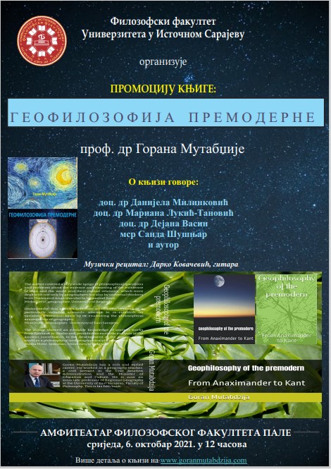 | Goran Mutabdžija | Geofilozofija premoderne | Filozofski fak., UIS |