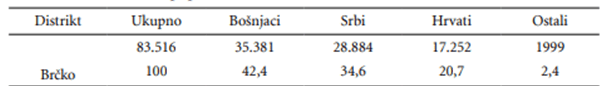 U političko-geografskom pogledu, tokom Odbrambeno-otadžbinskog rata, ovaj prostor predstavljao je strategijsku tačku za sve strane u BiH i zonu intenzivnih borbenih dejstava koja je odlučujuće okončana probojem jedinica VRS i stvaranjem „posavskog koridora”. Teritorija bivše opštine tako je podijeljena na dvije zone, od kojih je zonu „A” kontrolisala VRS, a zonu „B” ABiH. Nakon rata, ovaj prostor bio je sporan i riješen je arbitražom pred Međunarodnim sudom 1999. Tako je cijela teritorija predratne opštine ostala nepromijenjena. Na taj način ova zona je ujedinjena i danas predstavlja fizičku vezu između istočnog i zapadnog dijela Republike Srpske, kao i vezu između Tuzlanskog kantona i Posavske županije na teritoriji Federacije BiH. Demografska stvarnost Brčko Distrikta slična je prostoru cijele BiH.