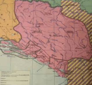 • Prvi je političkogeografska podijeljenost između prvih autohtonih slovenskih političko-teritorijalnih centara (koji su se održali i dalje razvijali) i ostalog prostranog pojasa dominacije slovenskog stanovništva bez čvrste vlastite organizacije (Sklavinija, Slavonija ili Slovinja).