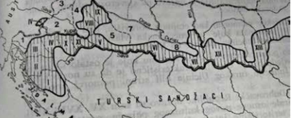 Početkom XVII v. nastupa nova vojno-politička situacija u BiH, a koju u osnovi definiše povlačenje poražene Turske vojske iz Austrougarske monarhije i sa njom muslimanskog stanovništva iz tih krajeva. BiH postaje zona odsudne odbrane Turskog carstva, a na njenim granicama, sa obje strane, započinje dodatno utvrđivanje gradova. Kraj prethodnog perioda obilježila su naseljavanja emigranata duž graničnog pojasa, pa je ovo postao najvažniji geografski proces na razmeđu vijekova. Nova austrijska vojnokrajiška organizacija, čije se relevantno geografsko značenje formira krajem XVI v., imaće dalekosežne istorijsko-geografske posljedice. U ovom graničnom pojasu prema BiH, dodatno će se naseliti i učvrstiti položaj hrišćana (Srbi) koji emigriraju iz Turske i postaju graničari koji će braniti hrišćanstvo i Habzburšku monarhiju naredna tri vijeka, a potom će kroz genocid (Drugi svjetski rat) i seriju pogroma krajem XX v. („Bljesak” i „Oluja”) biti protjerani sa ovih područja. Dio proučavanog prostora koji je tada bio van Osmanske (Otomanske) imperije, karakterisao je razvoj i neagrarne privrede, prije svega: rudarstva, industrije piva, stakla, tekstila i papira, a povećana je gradnja mlinova i pilana. Ove krupne istorijskogeografske promjene bile su vidljive u Primorju, ali i u Panoniji, gdje je unutar Habzburške monarhije poseban značaj stekao Karlovac. Nakon poraza Turske u Morejskom ratu (1683–1699) i Karlovačkog mira (1699), austrijska Vojna krajina je organizovana kroz pukovnije i županije, a ofanziva Austrijske vojske je uništila gotovo sve vidljive elemente kulturnog pejzaža koji se vežu za vijek i po dugo osmansko trajanje na prostoru Panonije. Nestanak svih geografski relevantnih tragova turske naseljske stabilizacije (orijentalni tip grada), određene jačanjem ratarske komponente u graničnim zonama, proširuje se na cijeli prostor do Save i Dunava. Muslimansko stanovništvo bježi u panici iz ovih područja prema jugu, a manje grupe se pokrštavaju.