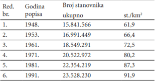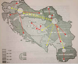 „R. Petrović je u studiji Migracije u Jugoslaviji i etnički aspekt istaknuo da podaci popisa stanovništva od 1961. do 1981. godine pokazuju znatno jaču prostornu mobilnost srpskog i hrvatskog stanovništva u odnosu na muslimansko stanovništvo u Bosni i Hercegovini” (Pašalić, 2012). Gradovi sa više 100.000 stanovnika su: Beograd, Zagreb, Skoplje, Sarajevo, Ljubljana, Novi Sad, Rijeka, Split i Niš. 96 Novi gradovi u ovoj mreži postaju: Maribor, Banja Luka, Osijek, Subotica, Titograd, Priština, ali i Tuzla, Mostar, Subotica i Bitolj iako još nisu dostigli ovaj broj stanovnika.