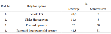 Ovaj trend migracionog salda i promjene etničke strukture, najbolje potvrđuje primjer Sarajeva (1971–1991), u kojem je broj stanovnika porastao za 167.597 lica, od čega je bilo 98.382 Muslimana, 42.709 Jugoslovena i 27.005 Srba. U istom periodu je Sarajevo napustio 6.481 stanovnik koji se izjašnjavao kao Hrvat i 5.072 iz kategorije „ostali” (Mutabžija, 2000). Ovakav trend demografskog razvoja pratila je ozbiljna promjena strukture stanovništva i povećanje prosječne gustine stanovanja. Prosječna vrijednost kretala se od 50,1 st./km2 (1948), preko 64,1 (1971) do 85,6 st./km2 . Posmatrajući regionalne razlike u distribuciji stanovništva, na postojećem nivou društveno-ekonomskog razvoja uočava se presudni uticaj prirodnogeografskih faktora. Prema popisu 1971, „najgušće i najravnomjernije naseljena geografska regija je panonska i peripanonska Bosna (98 st/km2), naseljenost planinskog (58 st/km2 ) i mediteranskog (49 st/km2 ) područja znatno je manja i neravnomjernija (Markotić, 1983).