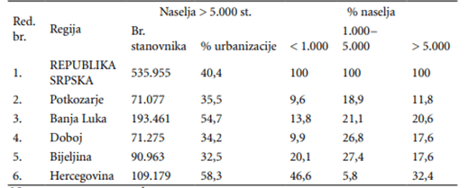 Tabela 4.3. Urbano-ruralni odnosi u Republici Srpskoj