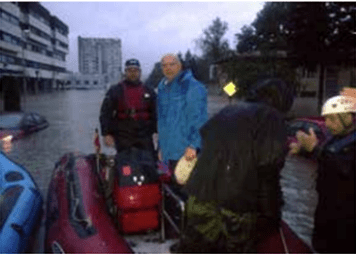 Foto 4.16. Rafting na Vrbasu jedan je od značajnih turističkih potencijala regije. Nastavnici Filozofskog fakulteta Pale (Tanović, Mutabdžija i Živković) u kanjonu Tijesno.