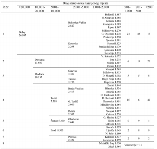 Tabela 4.11. Opšti podaci o strukturi naseljenih mjesta (www.rzs.rs.ba)